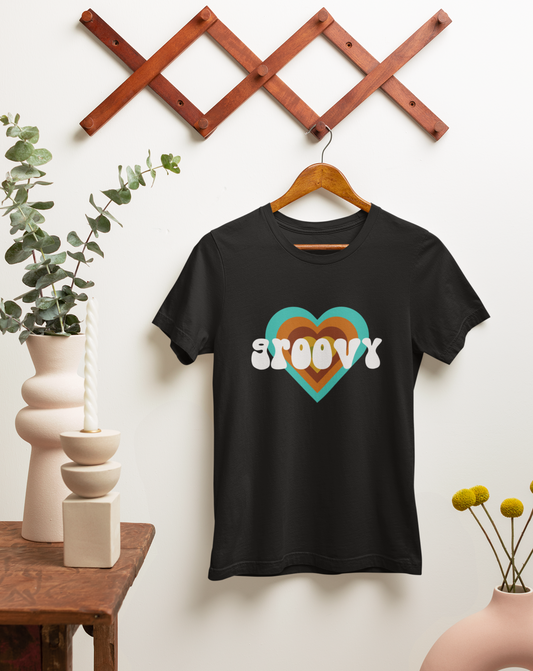 'Groovy' cotton, vintage-inspired t-shirt. Small through to 3XL