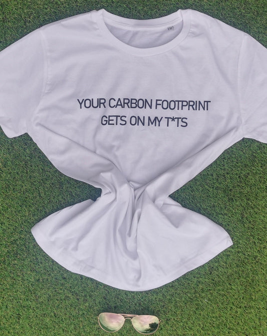 'Your carbon footprint...' climate change organic cotton t-Shirt, one size