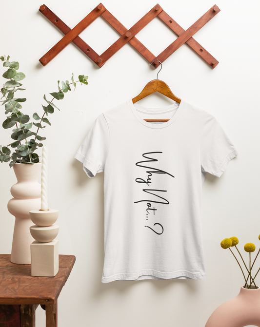 'Why not?' woman's organic cotton t-shirt. Small through to plus-size
