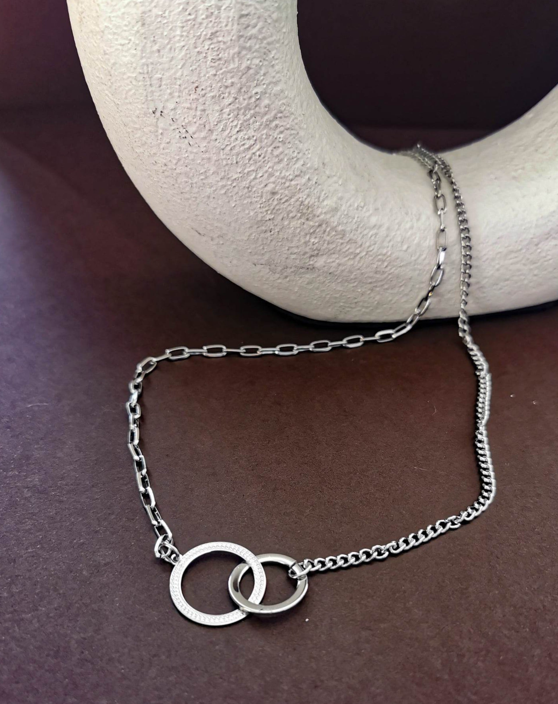 The interlocking rings of this necklace can mean many things. A strong bond or union, a lifelong journey and seeking of new experiences, the love between two people or a person and a pet...